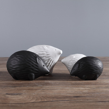 Nuevas figuritas de animales de cerámica de moda, muebles de decoración del hogar, exhibición de escritorio, erizo blanco y negro